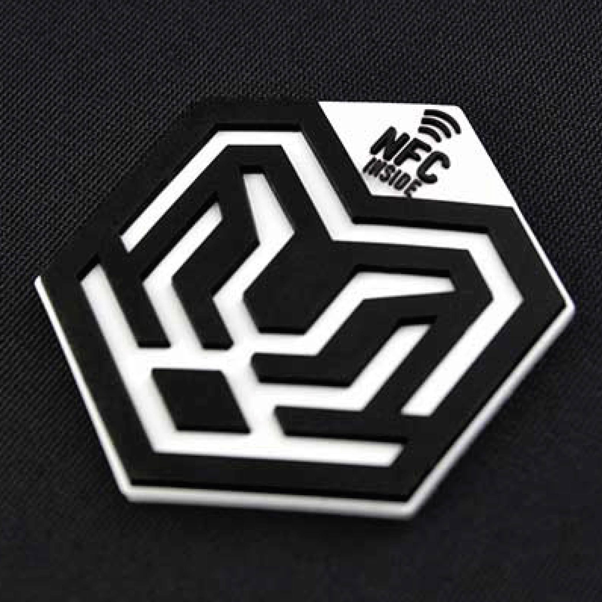 The integration of smart technology within the embellishment through layers in the screen-printing process, allows the incorporation of a programmable NFC chip within the 3D SILICONE MOULDED NFC heat transfer.