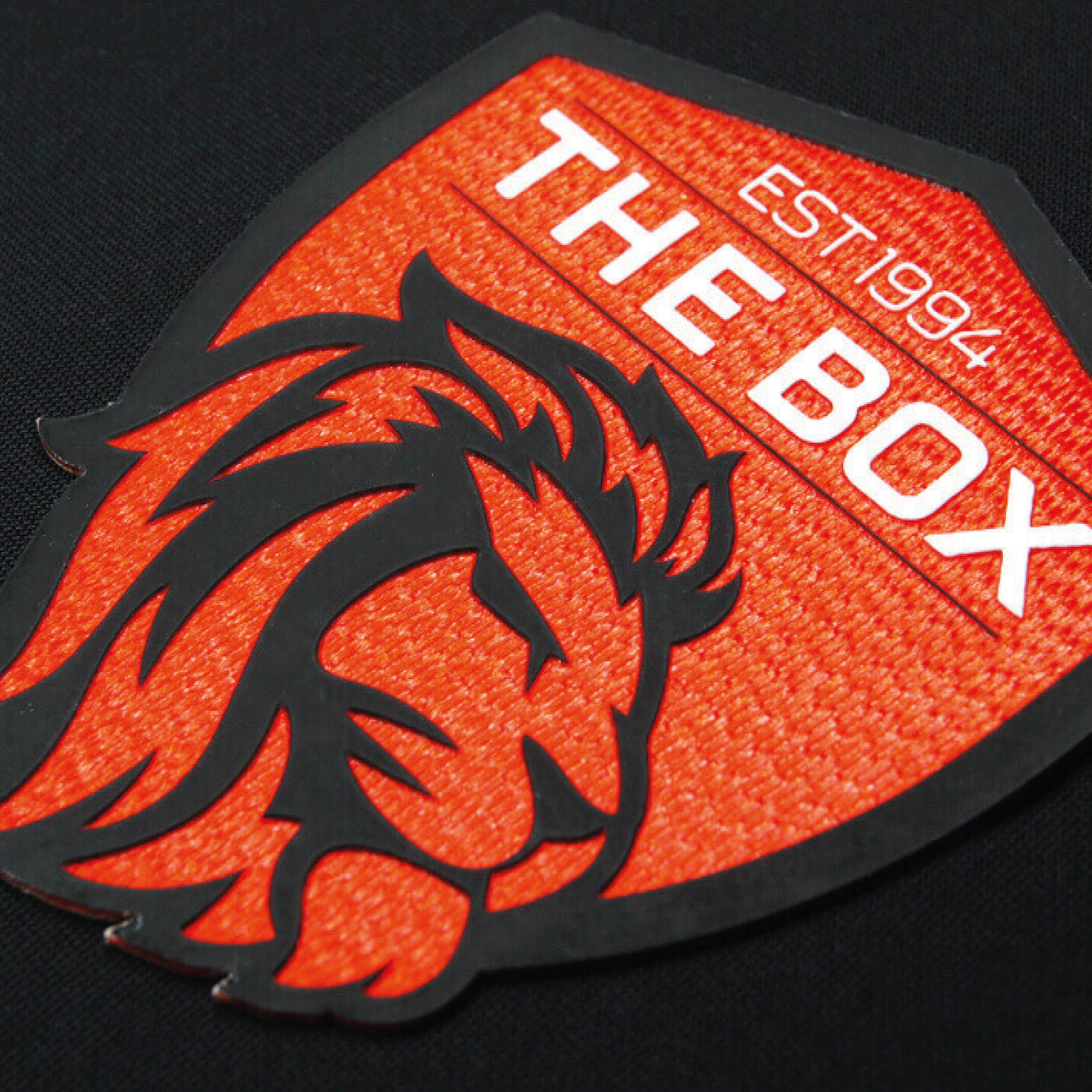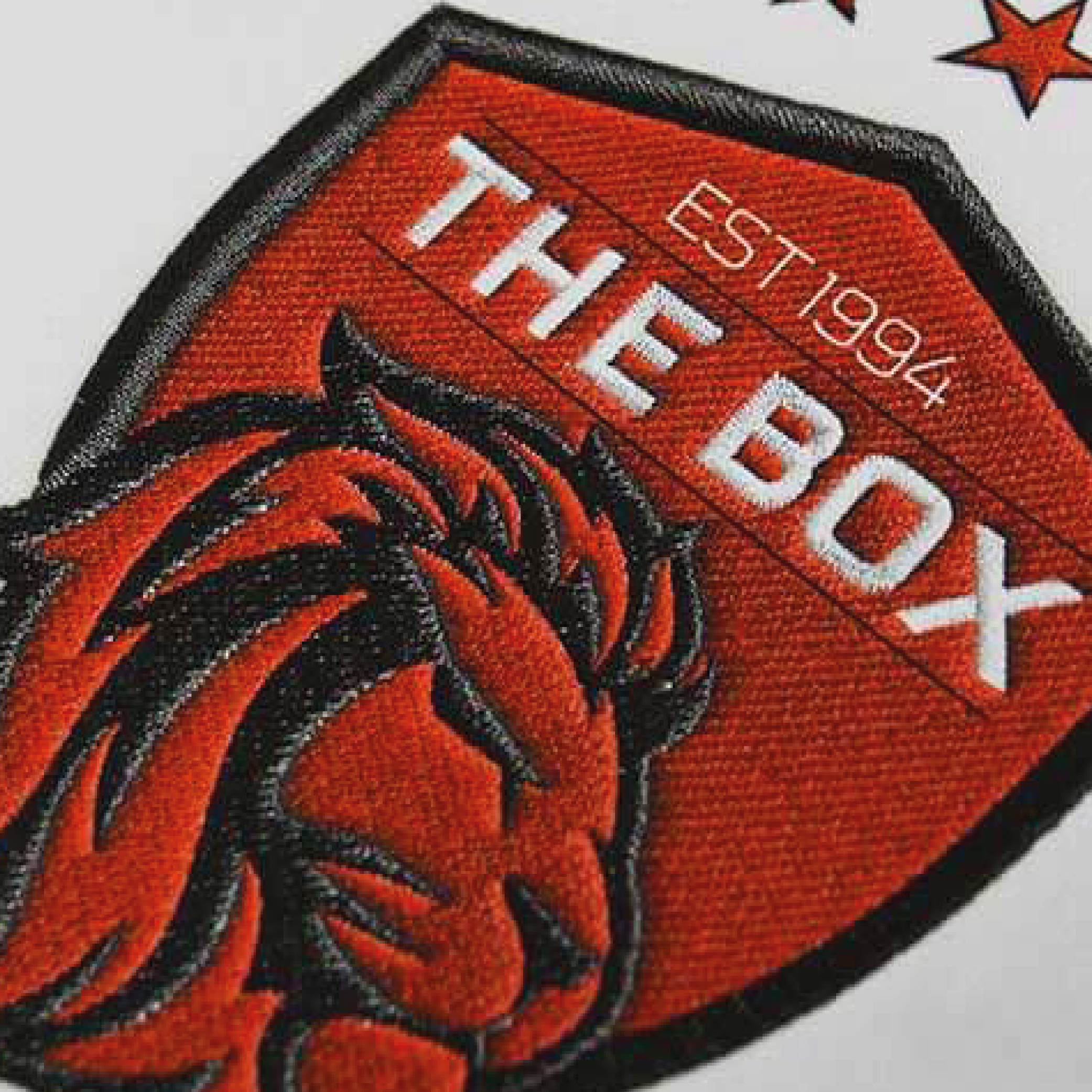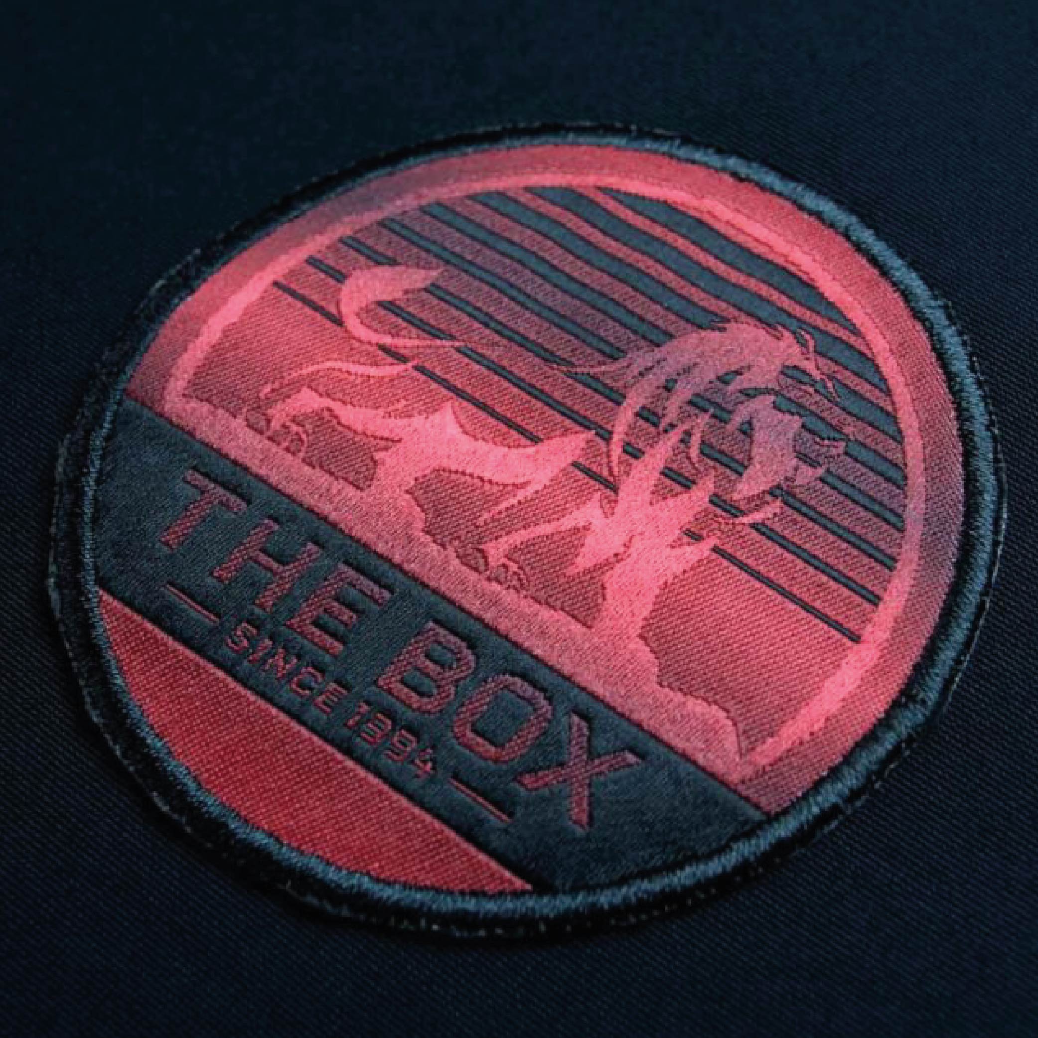 A woven heat transfer logo which is able to display high definition graphics combined with a embroidery outline to create a modern yet classic look.